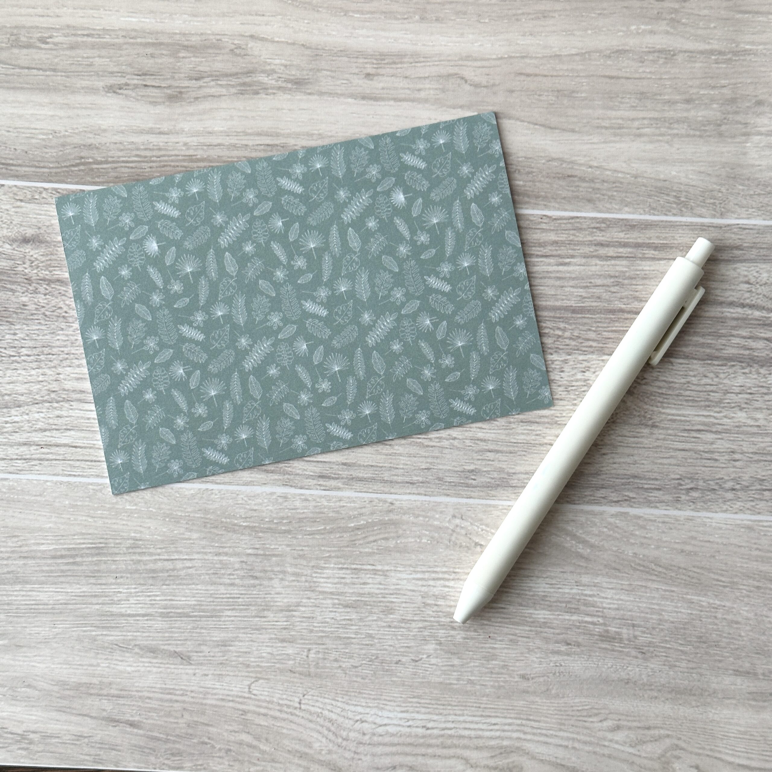 Share a thoughtful message with this hand-drawn leaf patterned 4″ x 6″greeting card. Each card features a unique design on the front and a blank interior for letters or notes. Comes with a matching handmade envelope. Perfect for personal messages, gifting, or special occasions.