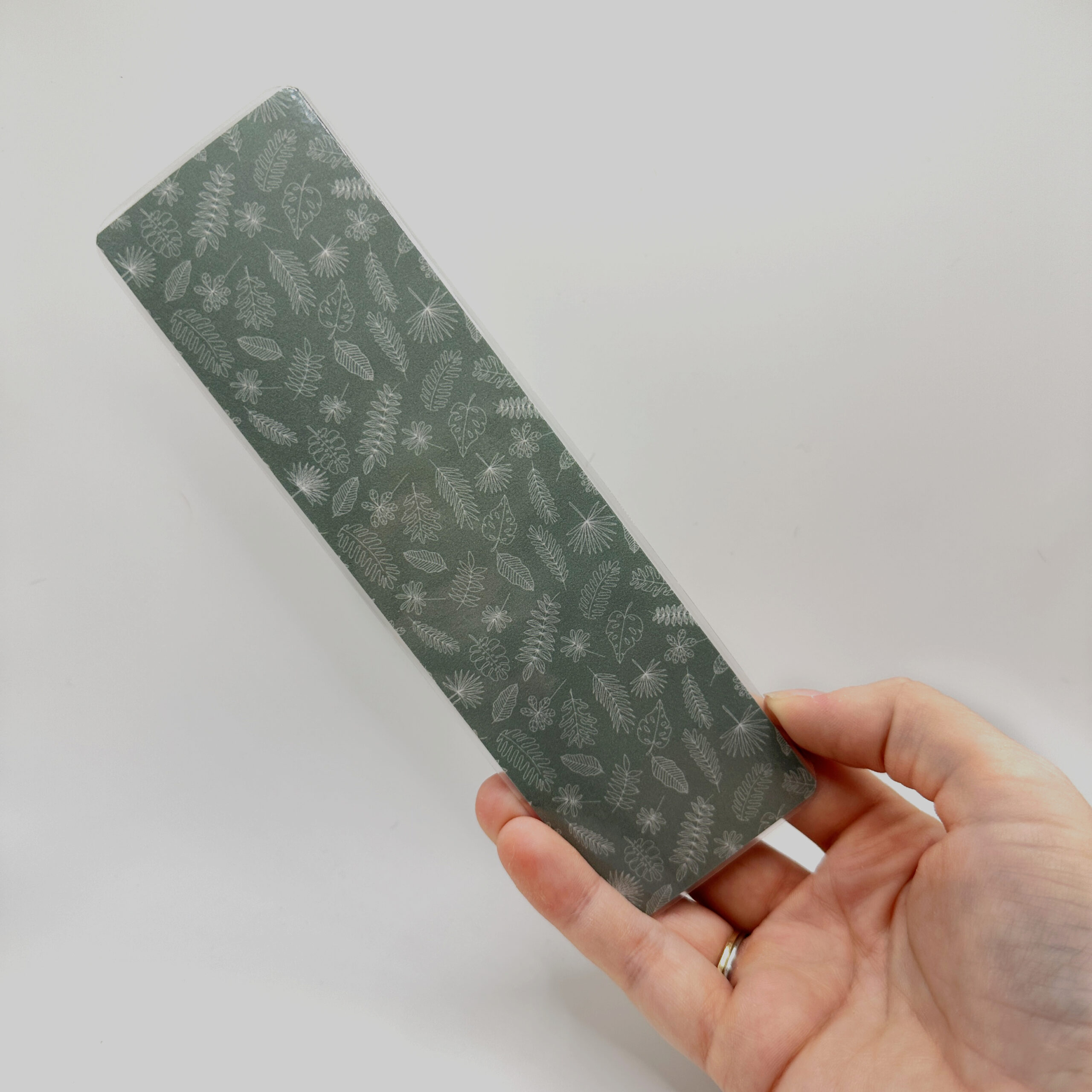 Keep your place with this hand-drawn laminated bookmark featuring assorted green leaves. Printed on sturdy 110lb/199gsm cardstock, each piece is hand-cut to 2 x 6 inches and laminated for durability. Perfect for gifting, collecting, or adding a touch of art to your reading.
