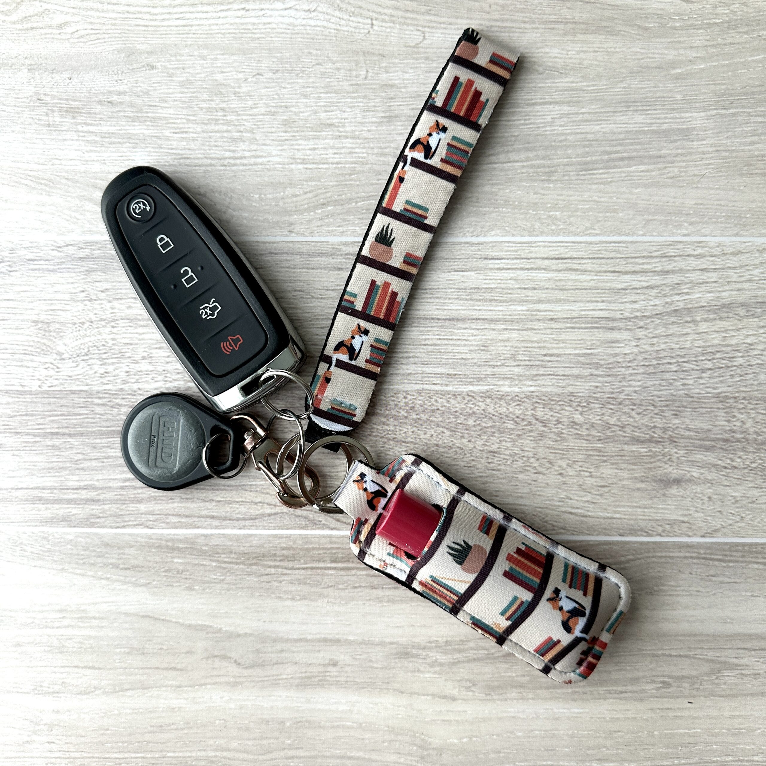 Be the first to review “Library Cat Lip Balm Holder and Wristlet Set”