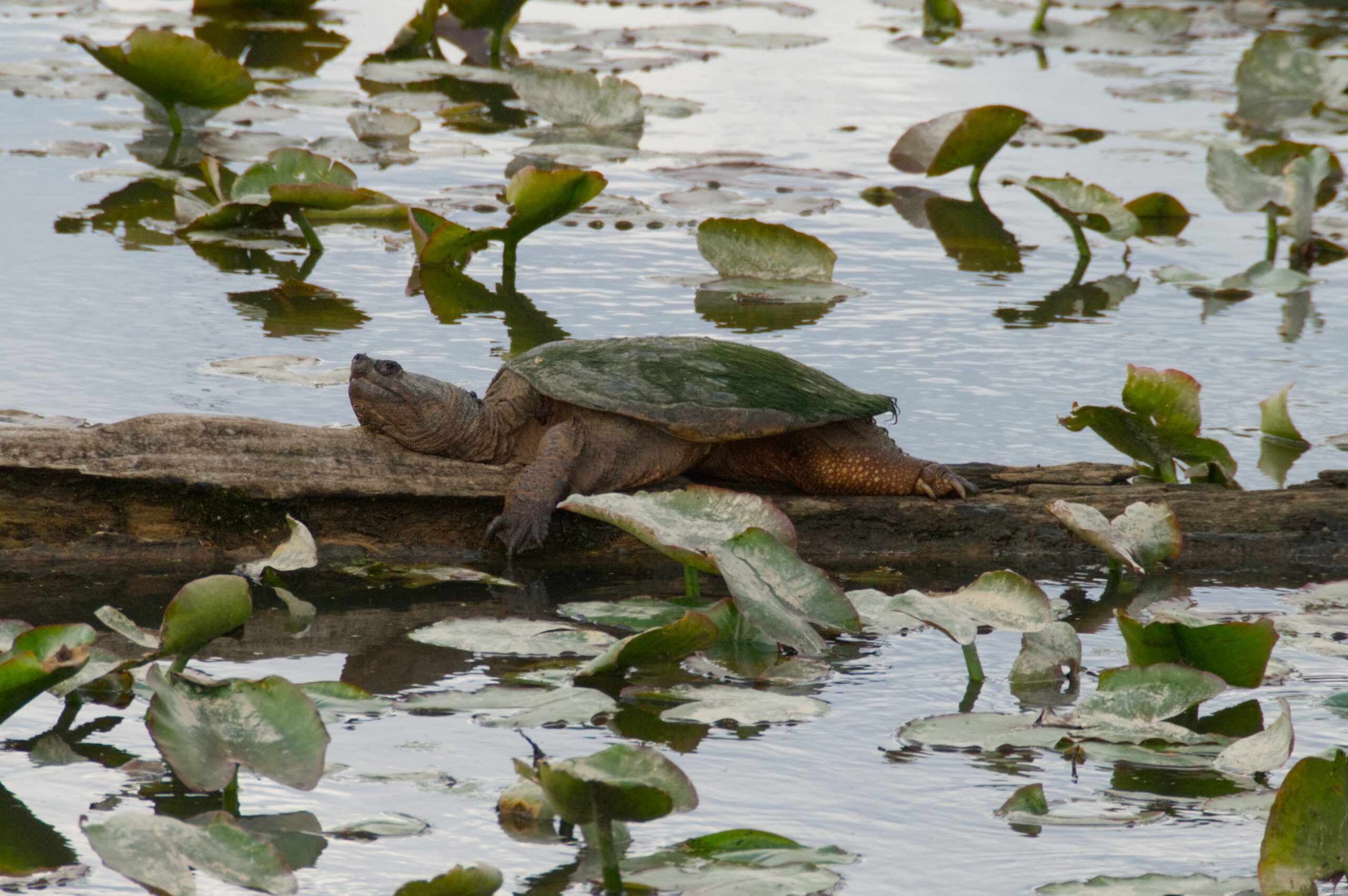A snapping turtle sunning on a log in Beaver Marsh in Cuyahoga Valley National Park. This turtle is really just a whole vibe. The beautiful greens scattered through the photo in the Lilly pads and the growths on the turtle’s shell make for a really pleasing view.