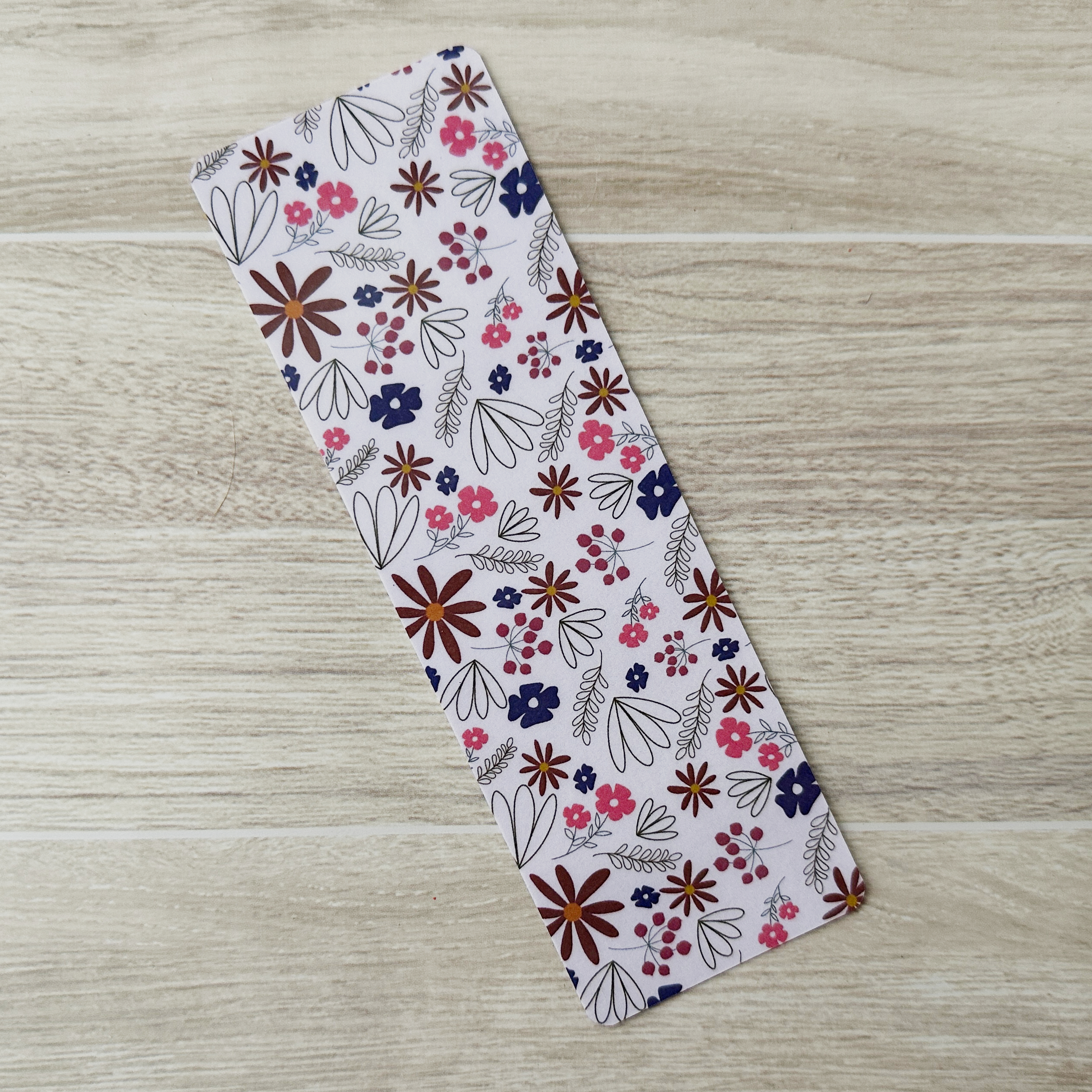 Keep your place with this hand-drawn laminated bookmark featuring dainty florals on a soft pink background. Printed on sturdy 110lb/199gsm cardstock, each piece is hand-cut to 2 x 6 inches and laminated for durability. Perfect for gifting, collecting, or adding a touch of art to your reading.