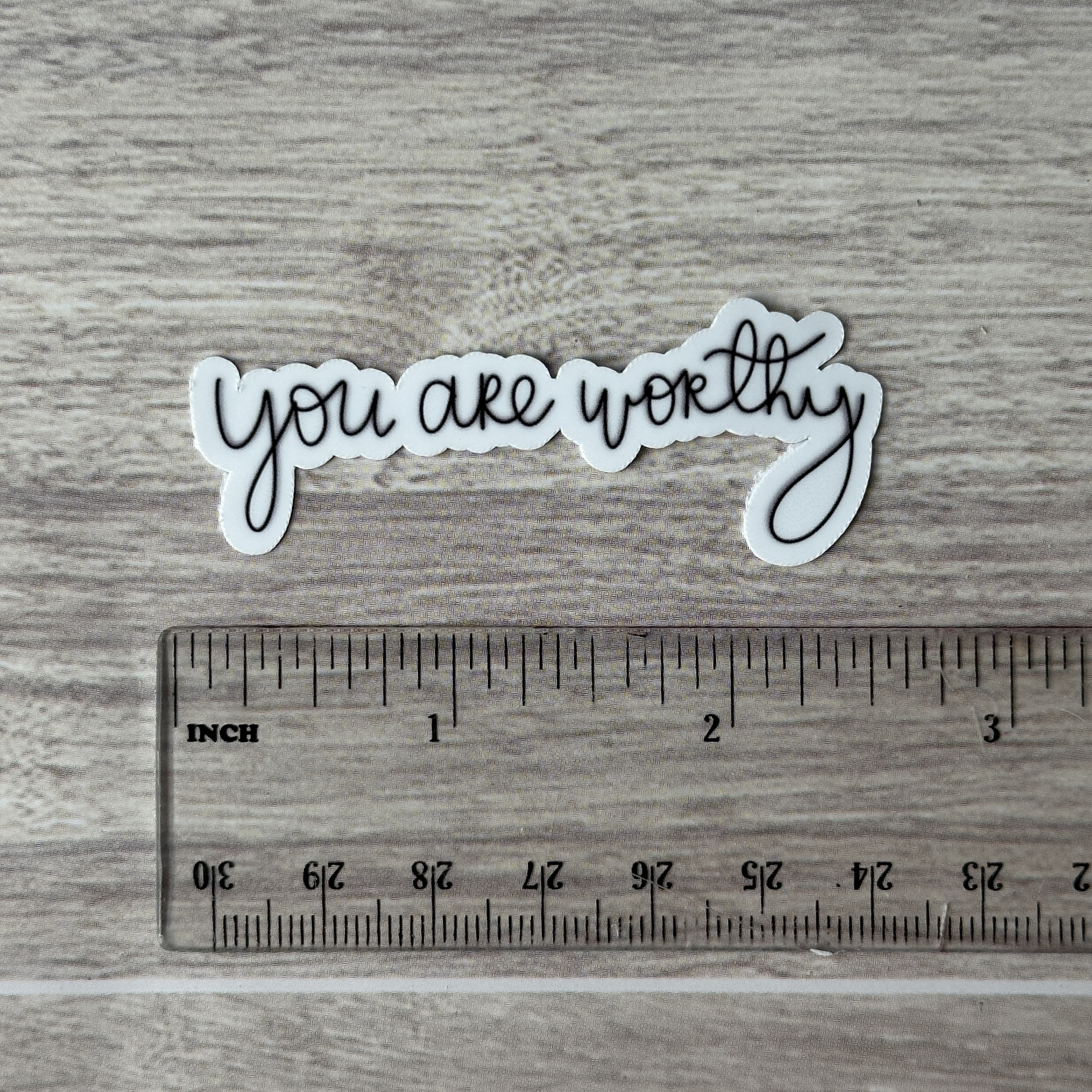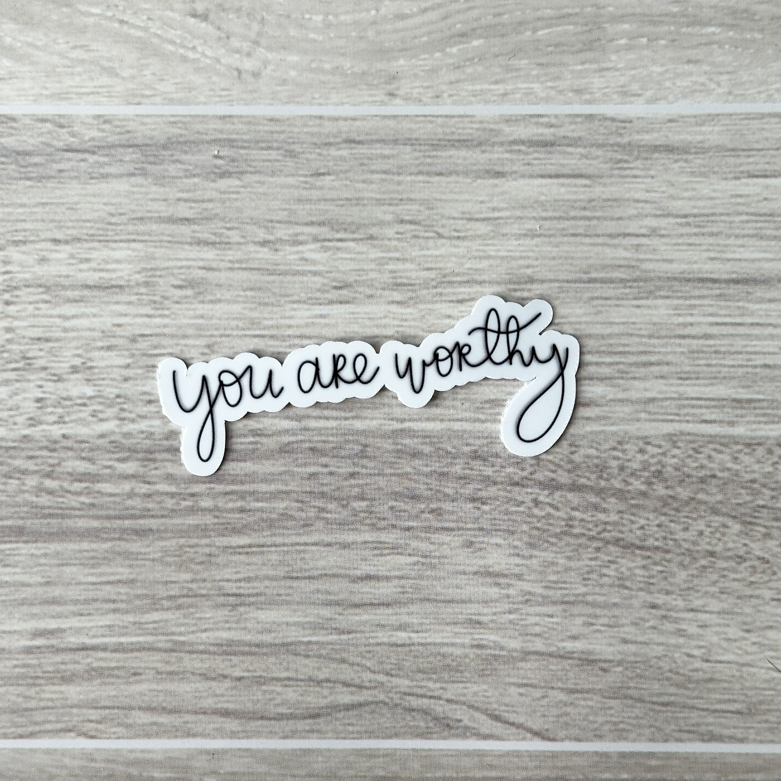 Durable vinyl sticker featuring the motivational statement “You are worthy”.